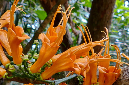 A vigorous, woody vine with pendulous clusters of lavender-blue flowers that resemble miniature orchids, followed by papery, sandpaper-like seed pods.