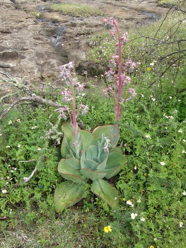 A low-growing succulent with creeping stems and small, fleshy, green leaves, often forming dense mats.