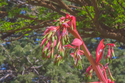A striking succulent with long, serrated, blue-green leaves that form a rosette, native to Mexico.