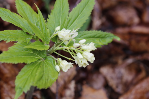 A small, herbaceous plant native to alpine regions, characterized by its delicate, fern-like leaves and small white flowers.