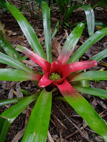 A large, spiky bromeliad native to the Andes of Chile, known for its striking inflorescence and sharp, hooked spines.