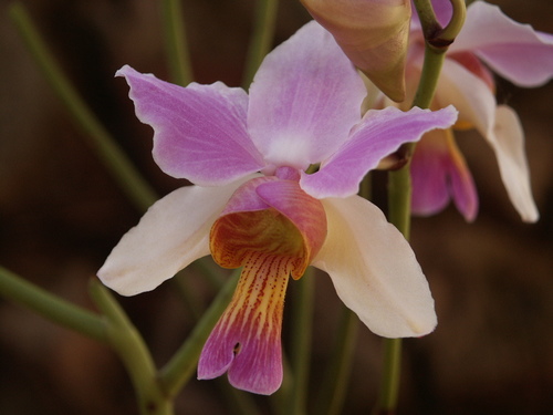 An epiphytic orchid species native to Southeast Asia, known for its unusually long and pendulous flowers.