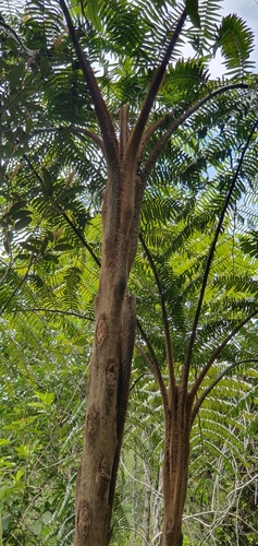 A large, fast-growing tree fern native to Australia, known for its elegant, arching fronds and trunk-like stem.