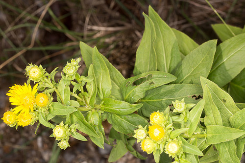 A perennial herbaceous plant with yellow flowers, often found in disturbed areas and meadows.