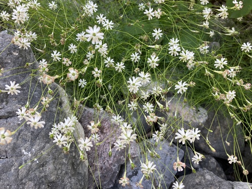 A herbaceous annual plant native to certain regions, characterized by its delicate stems and small, white flowers.