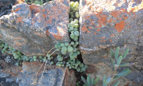 A rare, endemic plant species native to the Massif des Maures in France, characterized by its rosette-forming habit and distinctive inflorescences.