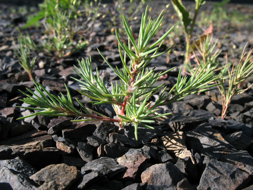 A herbaceous annual plant in the goosefoot family, characterized by its rigid stems and small greenish flowers.