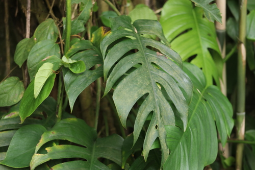 A tropical evergreen vine with large, deeply lobed leaves, native to Central and South America.