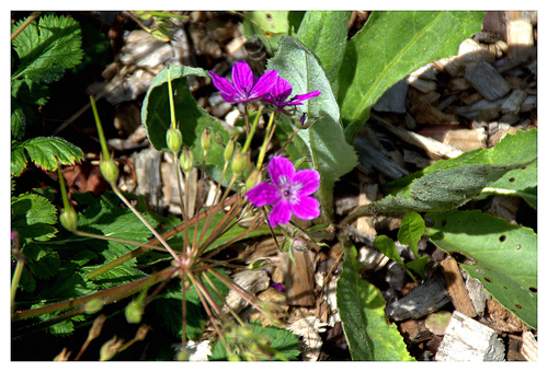 A delicate herbaceous plant native to the coastal regions of North Africa and the Iberian Peninsula, characterized by its deeply lobed leaves and distinctive long, beak-like seed pods.