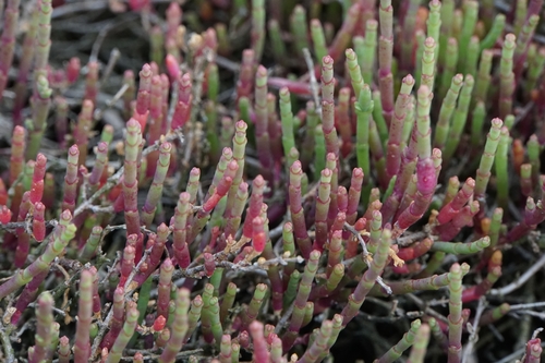 A halophytic plant native to coastal regions, characterized by fleshy, succulent stems and small, scale-like leaves.