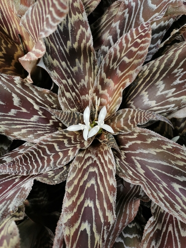 A bromeliad species native to South America, known for its striking rosette of narrow leaves and vibrant inflorescence.