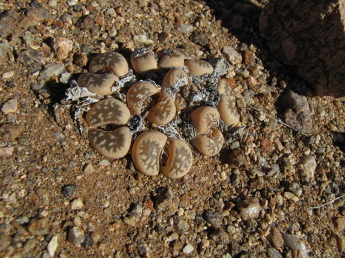 A small, succulent plant native to South Africa, resembling small stones with translucent 'windows' on top.